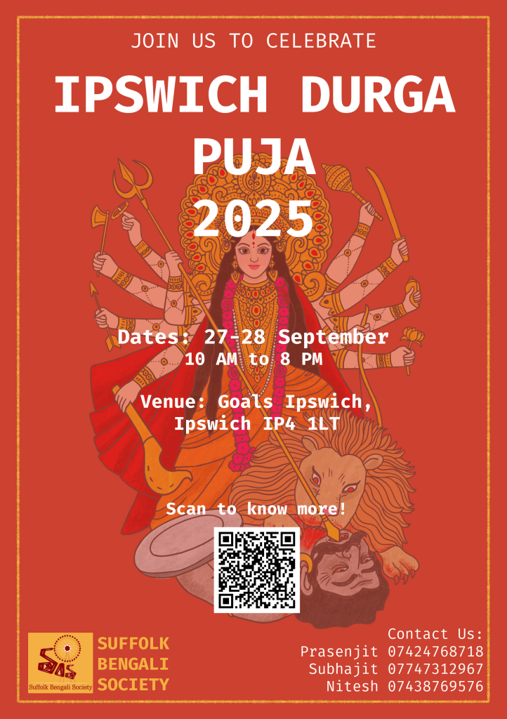 Check our drawing competition for young talents – https://suffolkbengalisociety.org.uk/2025/08/11/ipswich-durga-puja-drawing-competition-2025/